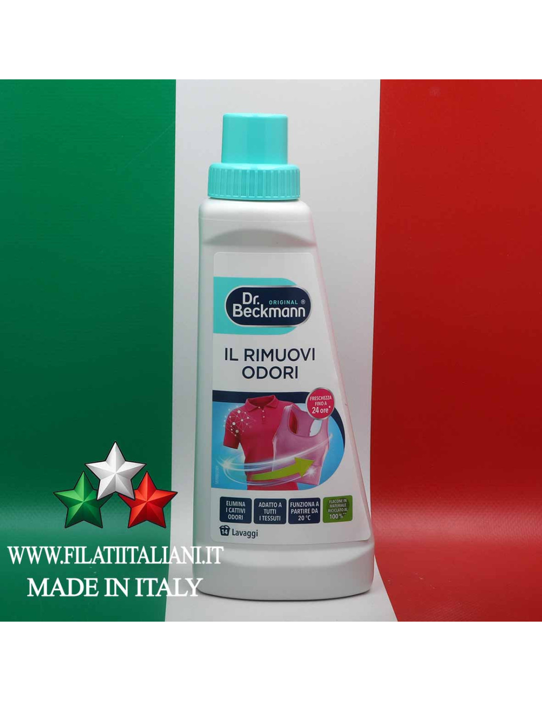 The formula with Anti-Odor Complex from Dr. Beckmann actively removes stubborn odors such as sweat, nicotine, and musty smells, working deep inside the fibers.